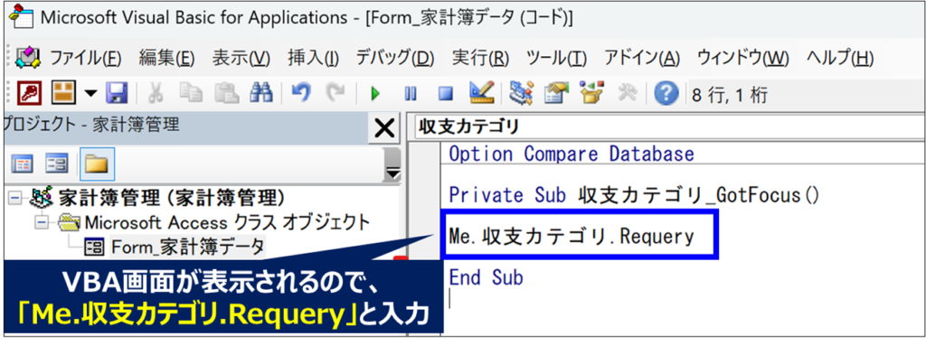 Me.収支カテゴリ.Requery