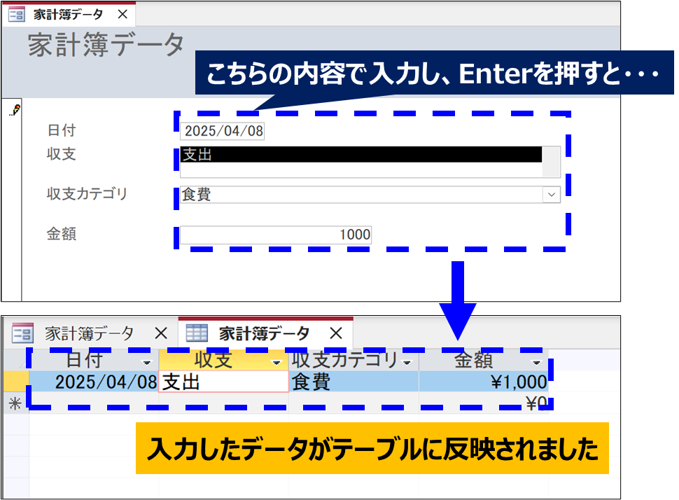 フォームとテーブルが正しく連動していれば、データは自動的に反映されます。