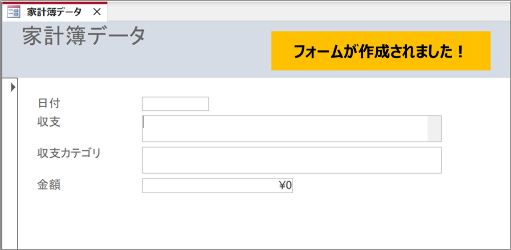 次に、作成したテーブルに対応するフォームを作成します。