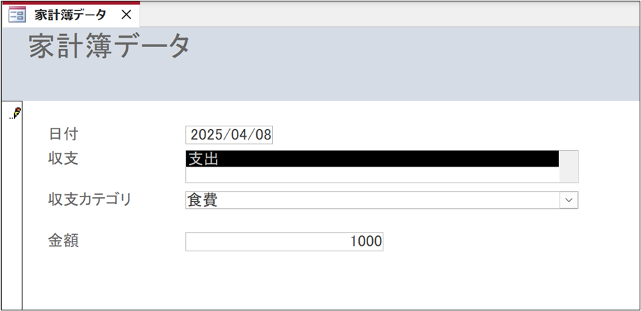 Accessフォームで「収支」を選択できるようにする