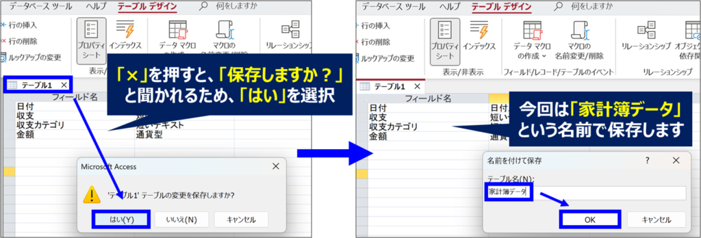 3. テーブルに名前をつけて保存する