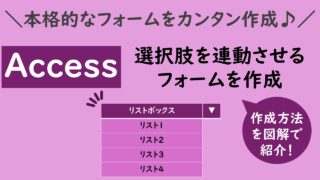 UncategorizedAccessフォームで選択肢を連動させる方法を徹底解説|リストボックスで自動絞り込み Microsoft Accessでは、フォームを使って直感的にデータ入力ができます。さらに、選択内容に応じて「次に選べる項目を自動で切り替える」ことができれば、入力ミスを防ぎ、業務効率を大きく向上させることが可能です。本記事では、Acces... 2025.04.09Uncategorized