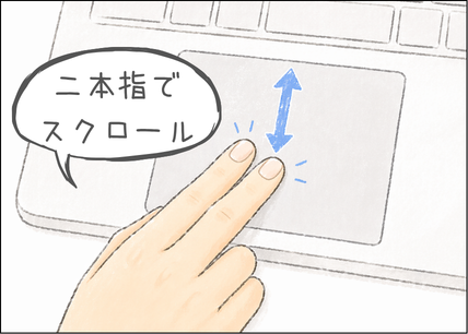 実は、タッチパッドで2本指を上下に動かすことでスクロールできます。
