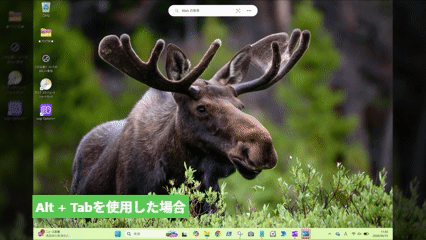 →「Alt + Tab」キーを押すことで、開いているウィンドウが切り替わります。