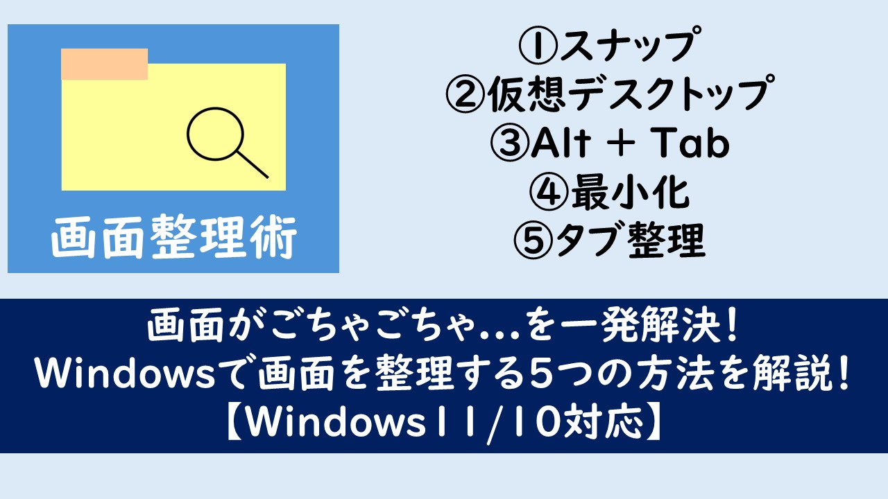 この記事では、Windows11で画面を整理する5つの方法を、初心者でも分かるように解説します。