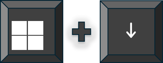 →「Win + ↓」キーを押すことで、ウィンドウが小さくなり、さらに押すと最小化されます。