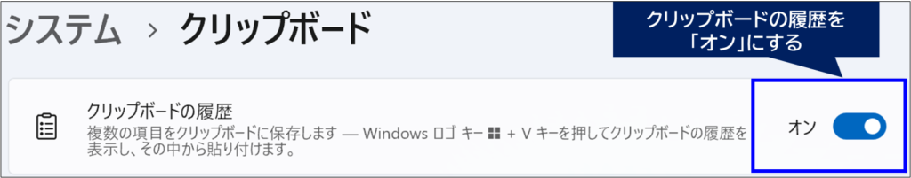 3.クリップボードの履歴を「オン」にする
